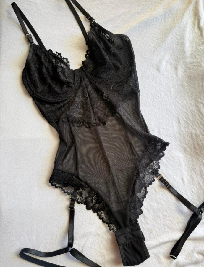Art 5675 Body con aro de puntilla y Microtul con arnés desmontable