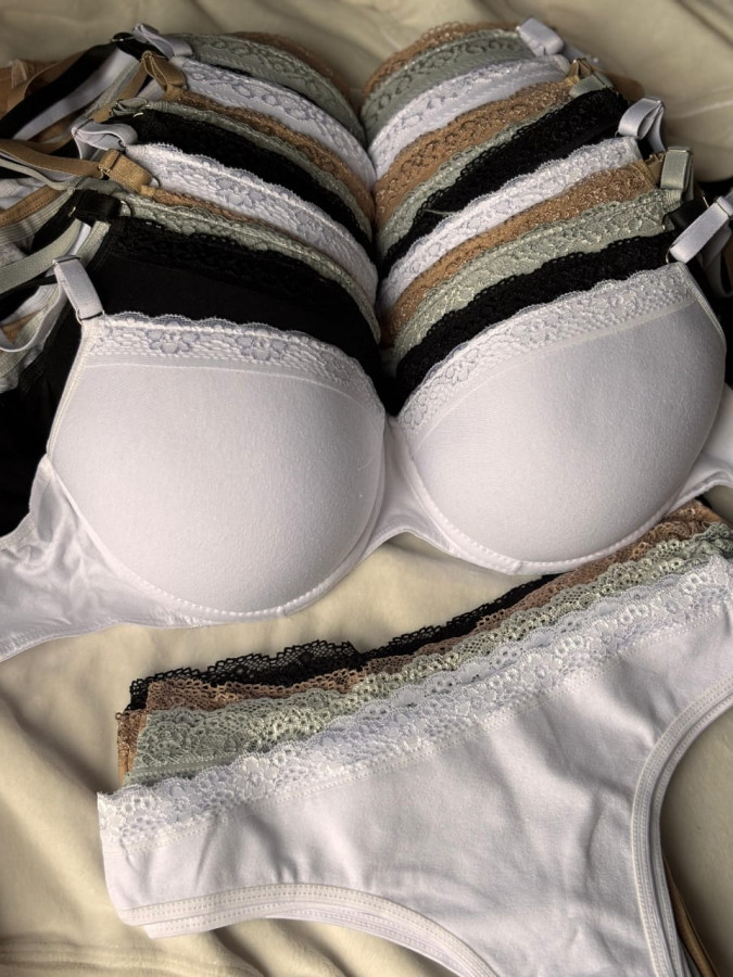 Conjunto de algodón taza soft con aro y colales enteras x 4 vine uno x talle del 85 al 100 sin elección de colores ni talles