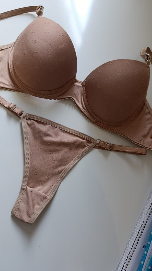 Conjunto de algodón con lycra labrado con colales regulable en bolsita