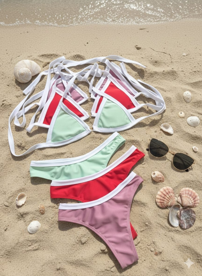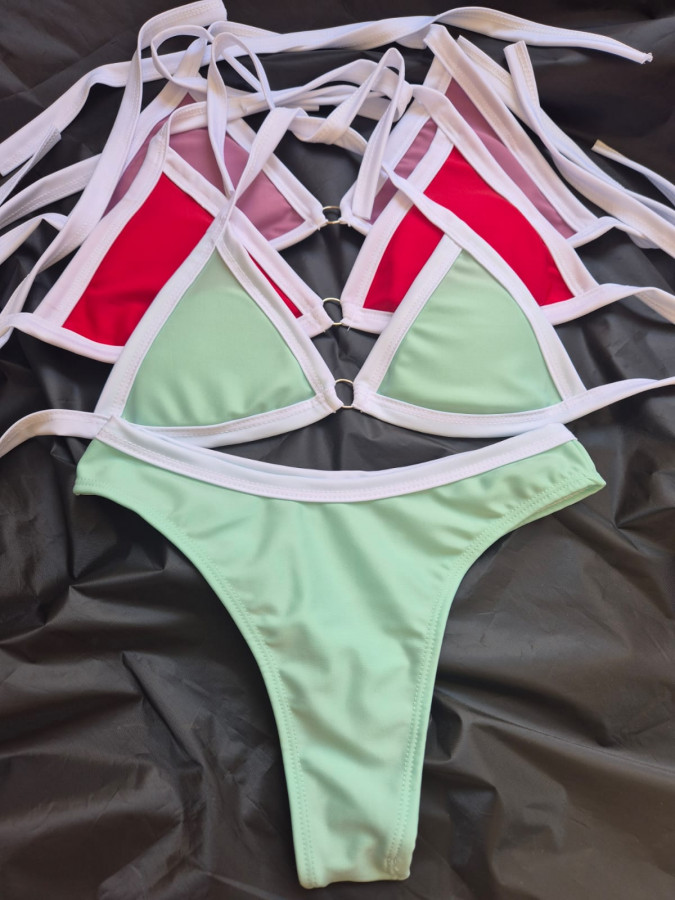 Mallas triángulo bicolor realizada en tricot de lycra con colales entera anticloro