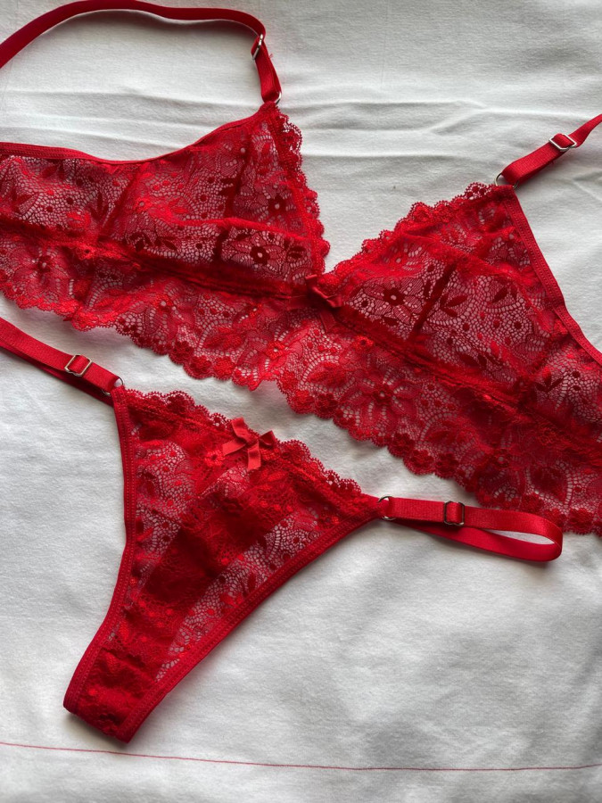 Veronica Bur bralets puntilla rojo. Conjunto corpiño sin arco y les regulable